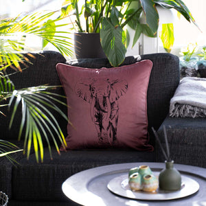 • Elefant | Pinot Noir är ett kuddfodral med motivet av en elefant broderad på framsidan. Detta kuddfodral i dekorativt sammet ger en lyxig inredningsdetalj i ditt hem. Beroende på hur ljuset träffar tyget, visar detta kuddfodralet många olika nyanser av sin färgskala. Detta eleganta, glänsande kuddfodral förvandlar den enklaste fåtölj, soffa eller stol till en ny inspirerande plats i ditt hem.