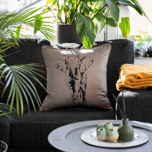 • Elefant | Oyster är ett kuddfodral med motivet av en elefant broderad på framsidan. Detta kuddfodral i dekorativt sammet ger en lyxig inredningsdetalj i ditt hem. Beroende på hur ljuset träffar tyget, visar detta kuddfodralet många olika nyanser av sin färgskala. Detta eleganta, glänsande kuddfodral förvandlar den enklaste fåtölj, soffa eller stol till en ny inspirerande plats i ditt hem.