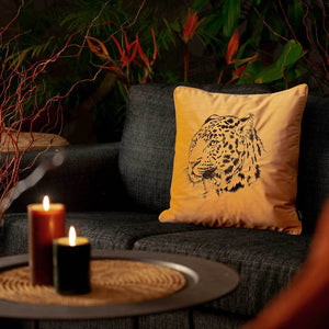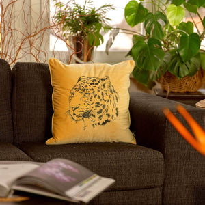 • Gepard | Peach är ett kuddfodral med motivet av en gepard broderad på framsidan. Detta kuddfodral i dekorativt sammet ger en lyxig inredningsdetalj i ditt hem. Beroende på hur ljuset träffar tyget, visar detta kuddfodralet många olika nyanser av sin färgskala. Detta eleganta, glänsande kuddfodral förvandlar den enklaste fåtölj, soffa eller stol till en ny inspirerande plats i ditt hem.