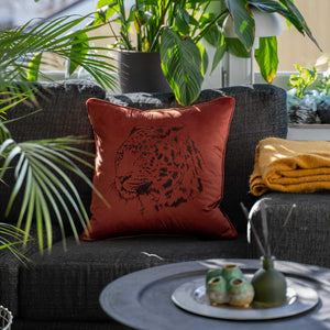 • Gepard | Mahogany är ett kuddfodral med motivet av en gepard broderad på framsidan. Detta kuddfodral i dekorativt sammet ger en lyxig inredningsdetalj i ditt hem. Beroende på hur ljuset träffar tyget, visar detta kuddfodralet många olika nyanser av sin färgskala. Detta eleganta, glänsande kuddfodral förvandlar den enklaste fåtölj, soffa eller stol till en ny inspirerande plats i ditt hem.