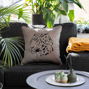 • Gepard | Oyster är ett kuddfodral med motivet av en gepard broderad på framsidan. Detta kuddfodral i dekorativt sammet ger en lyxig inredningsdetalj i ditt hem. Beroende på hur ljuset träffar tyget, visar detta kuddfodralet många olika nyanser av sin färgskala. Detta eleganta, glänsande kuddfodral förvandlar den enklaste fåtölj, soffa eller stol till en ny inspirerande plats i ditt hem.