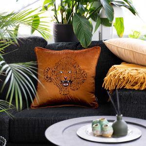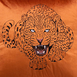 • Leopard | Rust är ett kuddfodral med motivet av en leopard broderad på framsidan. Detta kuddfodral i dekorativt sammet ger en lyxig inredningsdetalj i ditt hem. Beroende på hur ljuset träffar tyget, visar detta kuddfodralet många olika nyanser av sin färgskala. Detta eleganta, glänsande kuddfodral förvandlar den enklaste fåtölj, soffa eller stol till en ny inspirerande plats i ditt hem.