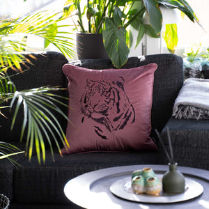 • Tiger | Pinot Noir är ett kuddfodral med motivet av en tiger broderad på framsidan. Detta kuddfodral i dekorativt sammet ger en lyxig inredningsdetalj i ditt hem. Beroende på hur ljuset träffar tyget, visar detta kuddfodralet många olika nyanser av sin färgskala. Detta eleganta, glänsande kuddfodral förvandlar den enklaste fåtölj, soffa eller stol till en ny inspirerande plats i ditt hem.