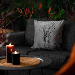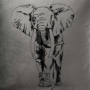 • Elefant | Granite är ett kuddfodral med motivet av en elefant broderad på framsidan. Detta kuddfodral i dekorativt sammet ger en lyxig inredningsdetalj i ditt hem. Beroende på hur ljuset träffar tyget, visar detta kuddfodralet många olika nyanser av sin färgskala. Detta eleganta, glänsande kuddfodral förvandlar den enklaste fåtölj, soffa eller stol till en ny inspirerande plats i ditt hem.